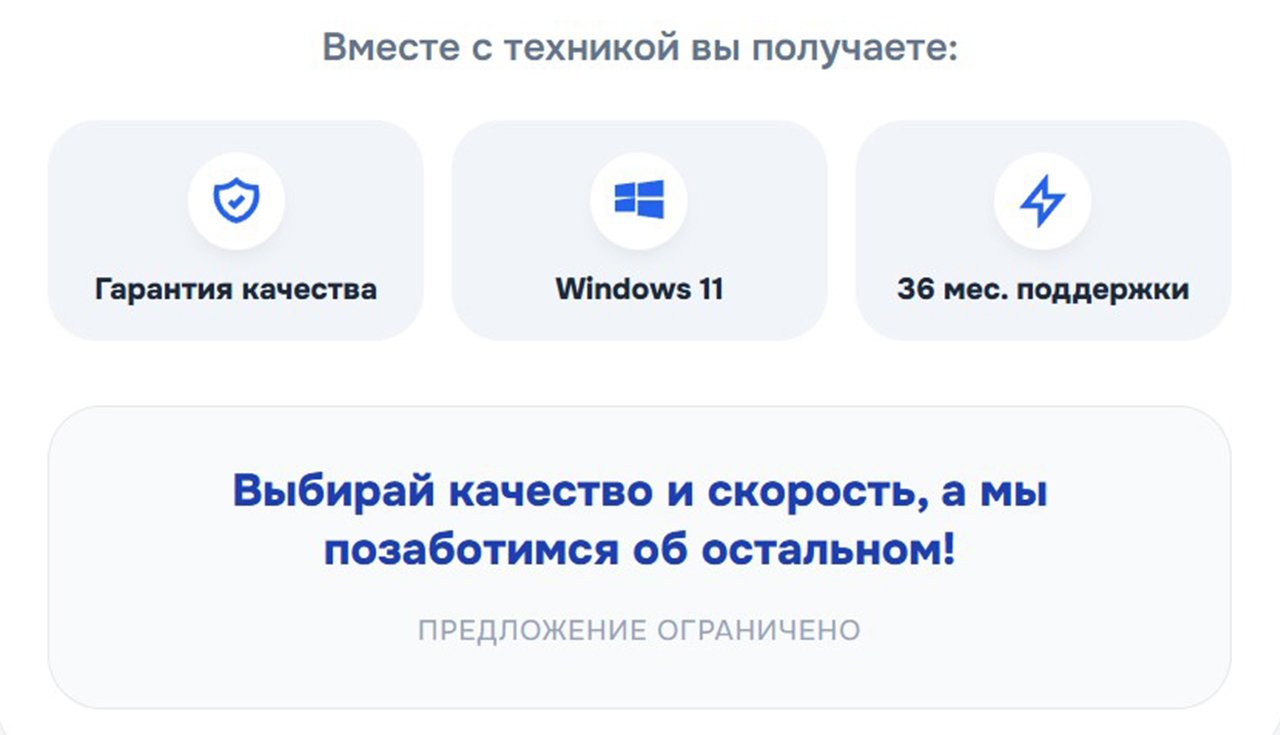 Мы бережно и тщательно подходим к комплектованию наших предложений и всегда критически относимся к качеству финального продукта. Это означает, что любое наше предложение, которое вы выбираете, проходит тщательную проверку, тестирование, обслуживание и подготовку, бережными руками наших сервисных специалистов. Мы уверены, что именно этот подход является залогом ваших лучших впечатлений от полученного устройства.