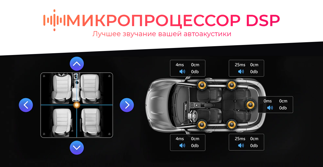 Для забезпечення найякіснішого звучання на материнській платі встановлено спеціалізований мікропроцесор, так званий DSP, який використовується для оброблення цифрового сигналу в режимі реального часу. Принцип роботи технології полягає в підлаштуванні параметрів складників автоакустики згідно з АЧХ салоном вашого автомобіля. Якщо висловлюватися простіше, за замовчуванням, всі компоненти акустичної системи працюють у штатному режимі, видаючи частотний діапазон і потужність приблизно на одному рівні, так само DSP процесор підлаштовує параметри системи в записі від АЧХ, розташування компонентів і водія в салоні авто. Це налаштування неабияк покращує звучання будь-якої композиції, розкриваючи її по-новому.