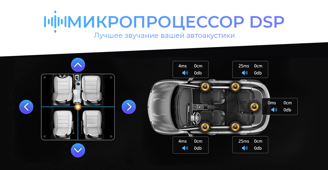 Для забезпечення найякіснішого звучання на материнській платі встановлено спеціалізований мікропроцесор, так званий DSP, який використовується для оброблення цифрового сигналу в режимі реального часу. Принцип роботи технології полягає в підлаштуванні параметрів складників автоакустики згідно з АЧХ салоном вашого автомобіля. Якщо висловлюватися простіше, за замовчуванням, всі компоненти акустичної системи працюють у штатному режимі, видаючи частотний діапазон і потужність приблизно на одному рівні, так само DSP процесор підлаштовує параметри системи в записі від АЧХ, розташування компонентів і водія в салоні авто. Це настроювання неабияк покращує звучання будь-якої композиції, розкриваючи її за новим.
