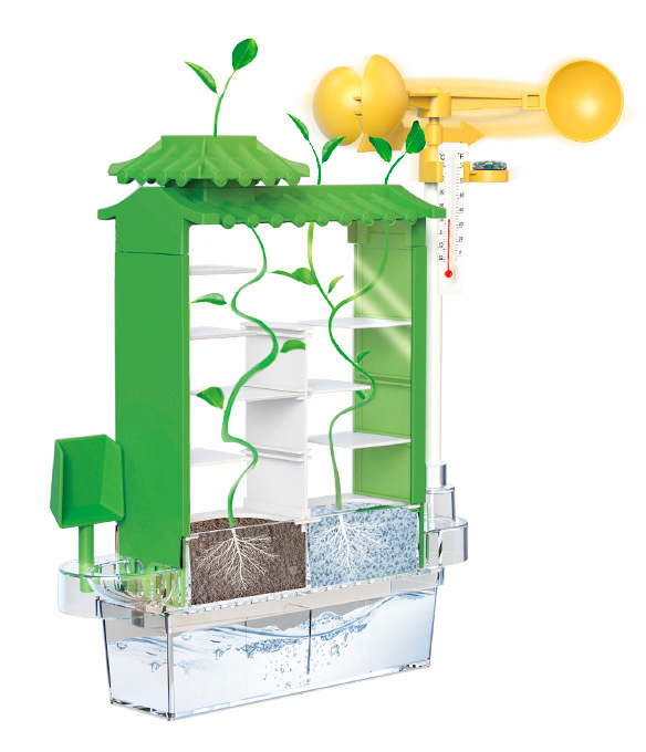 Цей набір дарує дитині можливість стати справжнім метеорологом, відстежуючи зміни клімату за допомогою функціональних приладів. До комплекту входять анемометр для вимірювання швидкості вітру, флюгер для визначення його напрямку та термометр для контролю температури. Всі ці інструменти закріплені на основній платформі, що дозволяє дитині системно фіксувати погодні дані та розуміти їхній вплив на ріст рослин. Такий практичний підхід допомагає глибше зрозуміти складні атмосферні процеси та взаємозв'язки в навколишньому світі.